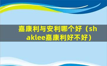 嘉康利与安利哪个好(shaklee嘉康利好不好)