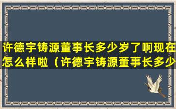 许德宇铸源董事长多少岁了啊现在怎么样啦(许德宇铸源董事长多少岁了啊现在怎么样啦视频)