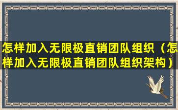 怎样加入无限极直销团队组织(怎样加入无限极直销团队组织架构)