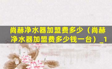 尚赫净水器加盟费多少(尚赫净水器加盟费多少钱一台)