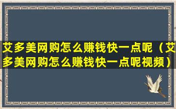 艾多美网购怎么赚钱快一点呢(艾多美网购怎么赚钱快一点呢视频)