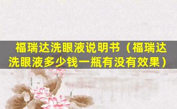 福瑞达洗眼液说明书(福瑞达洗眼液多少钱一瓶有没有效果)