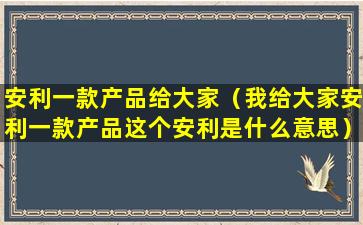 安利一款产品给大家(我给大家安利一款产品这个安利是什么意思)