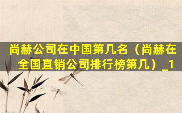 尚赫公司在中国第几名(尚赫在全国直销公司排行榜第几)
