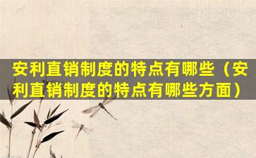 安利直销制度的特点有哪些(安利直销制度的特点有哪些方面)