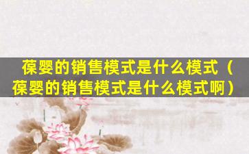 葆婴的销售模式是什么模式(葆婴的销售模式是什么模式啊)