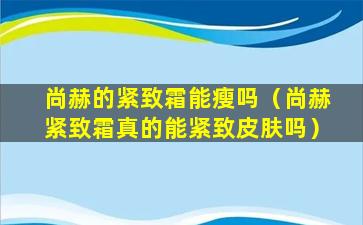 尚赫的紧致霜能瘦吗(尚赫紧致霜真的能紧致皮肤吗)