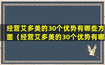 经营艾多美的30个优势有哪些方面(经营艾多美的30个优势有哪些方面的问题)