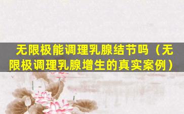 乳腺结节是一种常见的女性乳房疾病,表现为乳房肿块。无限极是一家生产保健品的公司,声称其部分产品具有治疗乳腺结节的作用。对于无限极产品的疗效,目前尚未得到科学证实。