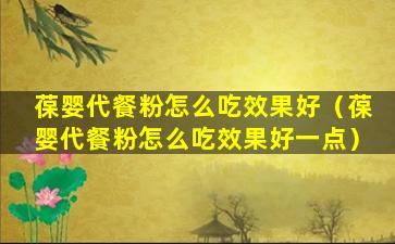 葆婴代餐粉怎么吃效果好(葆婴代餐粉怎么吃效果好一点)