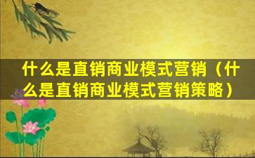 什么是直销商业模式营销(什么是直销商业模式营销策略)