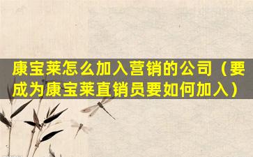 康宝莱怎么加入营销的公司(要成为康宝莱直销员要如何加入)