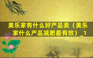 美乐家有什么好产品卖(美乐家什么产品减肥最有效)