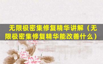 无限极密集修复精华讲解(无限极密集修复精华能改善什么)