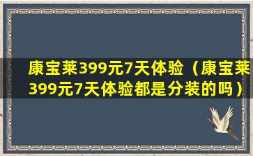 康宝莱399元7天体验(康宝莱399元7天体验都是分装的吗)