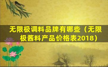 无限极调料品牌有哪些(无限极酱料产品价格表2018)