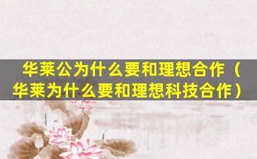1、华莱公为什么要和理想合作