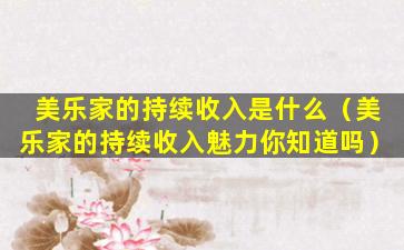 美乐家的持续收入是什么(美乐家的持续收入魅力你知道吗)