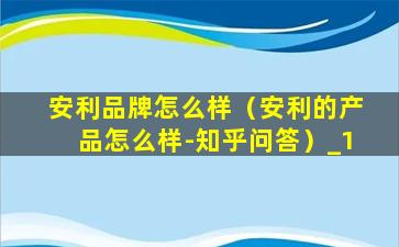 安利品牌怎么样(安利的产品怎么样-知乎问答)