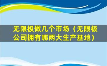 无限极做几个市场(无限极公司拥有哪两大生产基地)