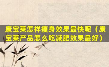 康宝莱怎样瘦身效果最快呢(康宝莱产品怎么吃减肥效果最好)