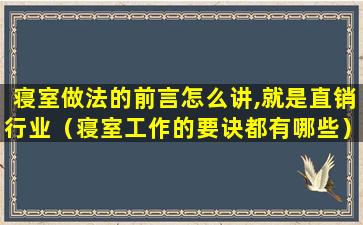 寝室做法的前言怎么讲,就是直销行业(寝室工作的要诀都有哪些)