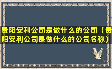 贵阳安利公司是做什么的公司(贵阳安利公司是做什么的公司名称)