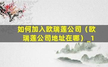 如何加入欧瑞莲公司(欧瑞莲公司地址在哪)