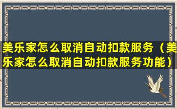 美乐家怎么取消自动扣款服务(美乐家怎么取消自动扣款服务功能)