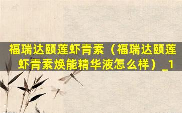 福瑞达颐莲虾青素(福瑞达颐莲虾青素焕能精华液怎么样)