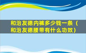 和治友德内裤多少钱一条(和治友德腰带有什么功效)