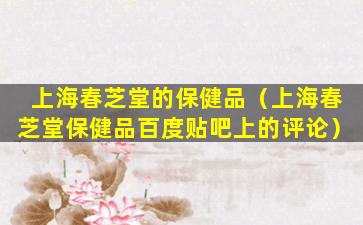 上海春芝堂的保健品(上海春芝堂保健品百度贴吧上的评论)