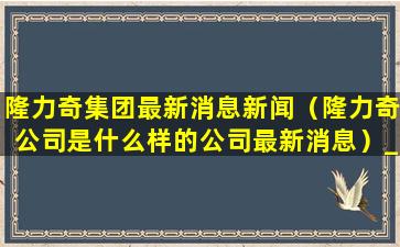 隆力奇集团最新消息新闻(隆力奇公司是什么样的公司最新消息)
