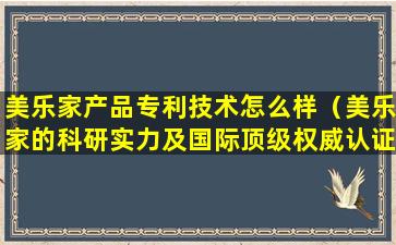 美乐家产品专利技术怎么样(美乐家的科研实力及国际顶级权威认证)