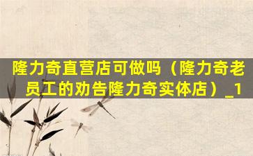 隆力奇直营店可做吗(隆力奇老员工的劝告隆力奇实体店)