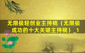 无限极轻创业主持稿(无限极成功的十大关键主持稿)