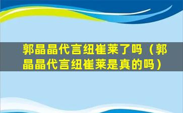 郭晶晶代言纽崔莱了吗(郭晶晶代言纽崔莱是真的吗)