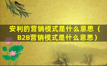 安利的营销模式是什么意思(B2B营销模式是什么意思)