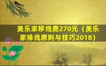 美乐家移线费270元(美乐家排线原则与技巧2018)