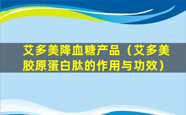 艾多美降血糖产品(艾多美胶原蛋白肽的作用与功效)