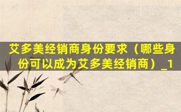 艾多美经销商身份要求(哪些身份可以成为艾多美经销商)