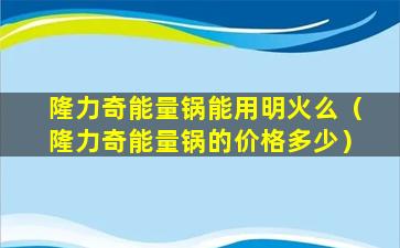 隆力奇能量锅能用明火么(隆力奇能量锅的价格多少)