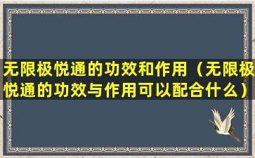 无限极悦通的功效和作用(无限极悦通的功效与作用可以配合什么)