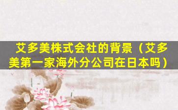 艾多美株式会社的背景(艾多美第一家海外分公司在日本吗)
