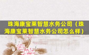珠海康宝莱智慧水务公司(珠海康宝莱智慧水务公司怎么样)