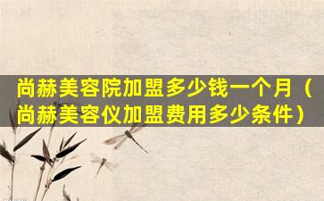 尚赫美容院加盟多少钱一个月(尚赫美容仪加盟 费用多少 条件)