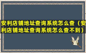 安利店铺地址查询系统怎么查(安利店铺地址查询系统怎么查不到)