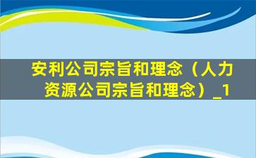 安利公司宗旨和理念(人力资源公司宗旨和理念)