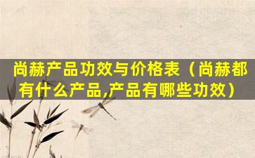 尚赫产品功效与价格表(尚赫都有什么产品,产品有哪些功效)
