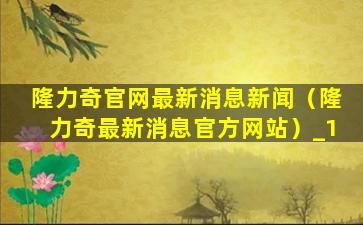 隆力奇官网最新消息新闻(隆力奇最新消息官方网站)